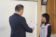 続いて同窓会会長からは、新入会員を歓迎するとともに、卒業年度を超えたつながりの中へ仲間入りする喜びが語られました。また、いよいよ翌日に控えた卒業式に向けて、中学校3年間を振り返り、それぞれの胸に良い思い出として残る一日となることを願うとともに、これからも同級生同士の絆を大切にし、明確な目標をもって充実した日々を送ってほしいとのエールが送られました。